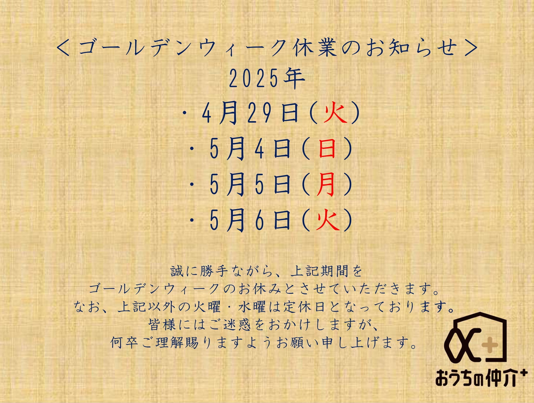2025年ゴールデンウィーク期間中の休業のお知らせ【おうちの仲介+】