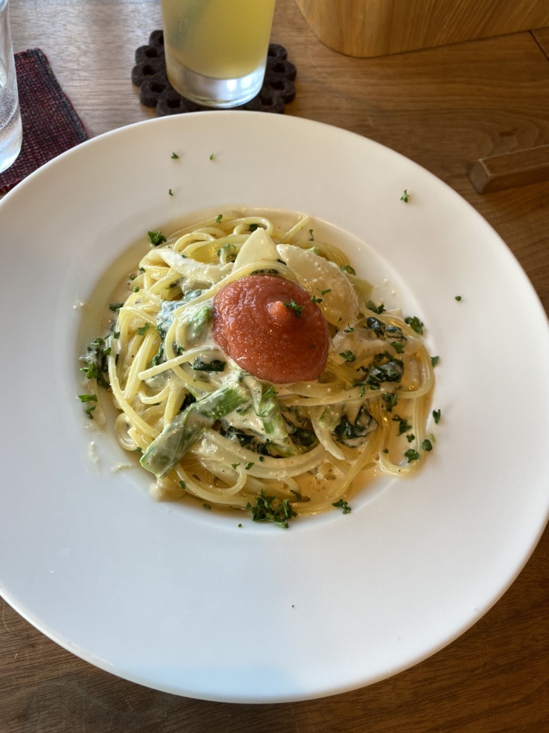 窓からの景色を眺めながら、私は明太子クリームパスタのランチセットを注文しました(^^♪