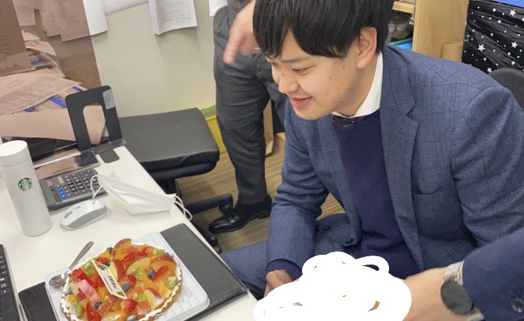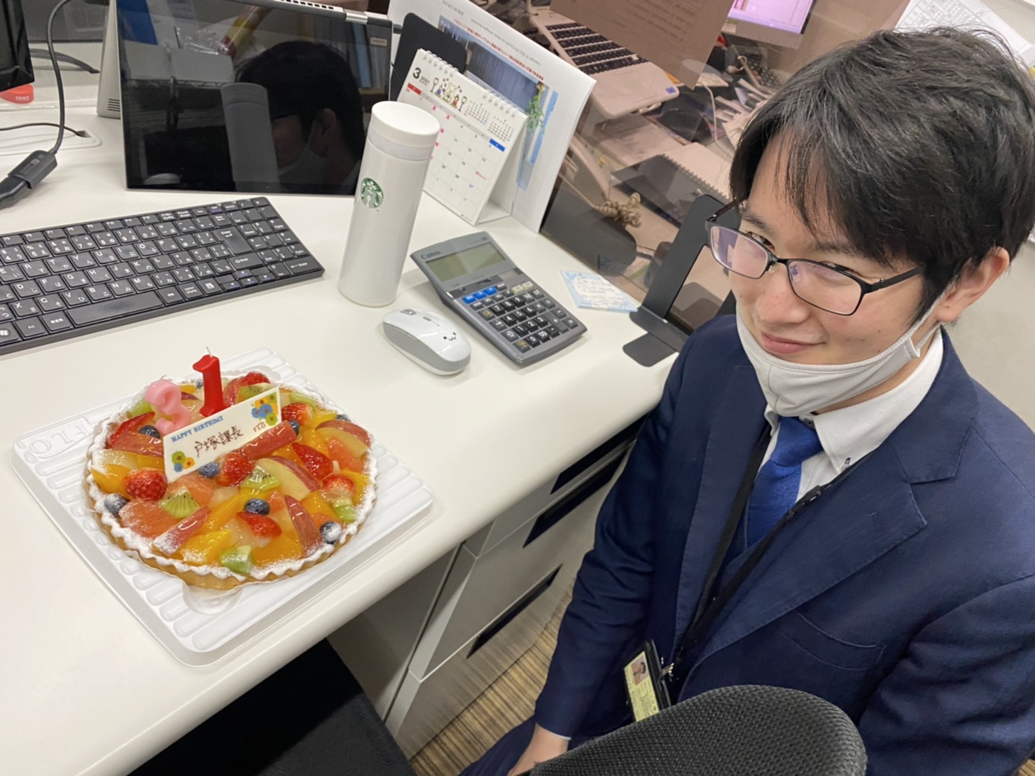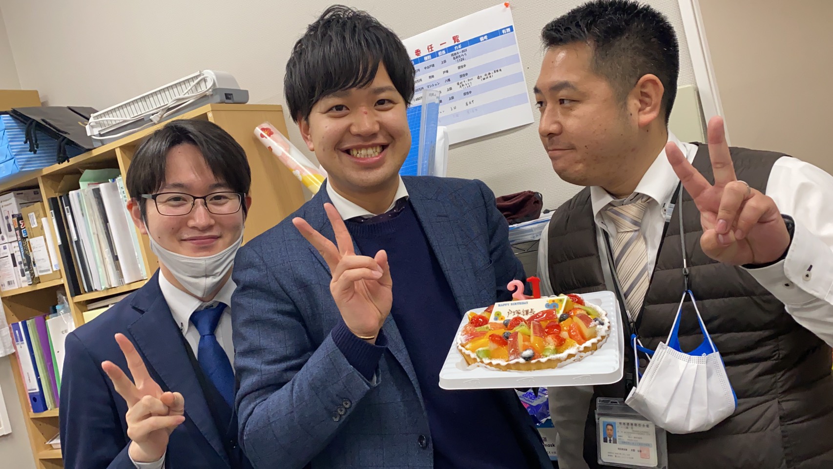 営業所のみんなで戸塚さんの誕生日をお祝い出来て、