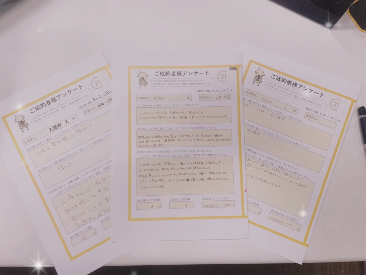 ご契約時にお客様からいただいたアンケートが彼の大きな支えになっています!