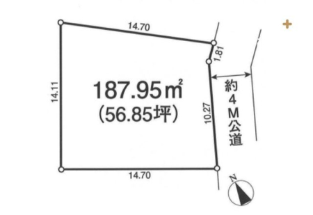 土地面積 176.75m² (53.46坪) 坪単価 25.81万円 /坪