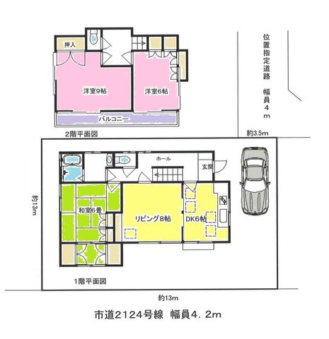 | 接道状況 | 接道: 南 公道 道路幅: 4.2m 接道: 北 私道 道路幅: 4m |