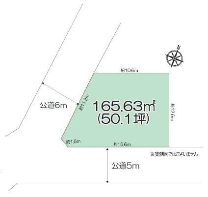 | 現況/引渡し | 更地/相談 | 接道状況 | 接道: 東 公道 道路幅: 6m 接道: 南 公道 道路幅: 5m |
