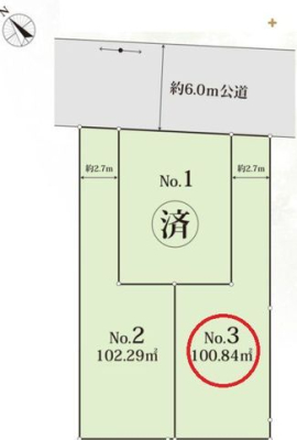 土地面積 102.29m² (30.94坪) 坪単価 86.61万円 /坪