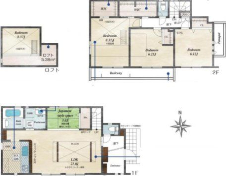 | 採光面 | 南 | 構造/階数 | 木造/地上2階建 |