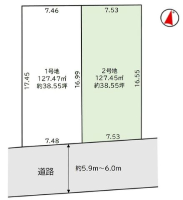 土地面積 127.47m² (38.55坪) 坪単価 41.47万円 /坪