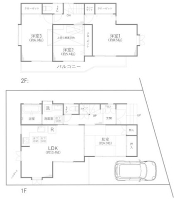 ◇3LDK+小屋裏収納+書斎スペース+納戸+カースペース2台