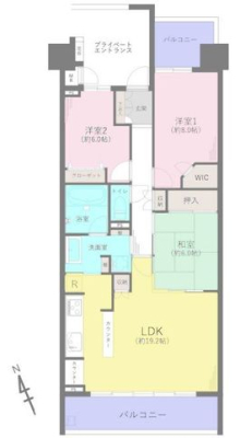所在階/階数 4階/地上20階建 バルコニー面積 14m²