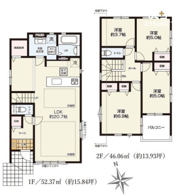 土地面積 121.74m² (36.82坪) 建物面積 98.43u