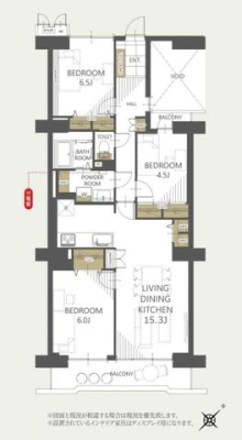 | 間取り | 3SLDK (洋室6.5/洋室4.5/和室6/LDK15) | ||||