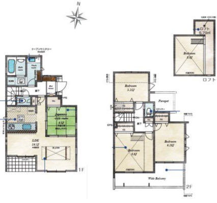 | 採光面 | 南 | 構造/階数 | 木造/地上2階建 |