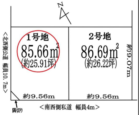 土地面積 | 85.66m² (25.91坪) | 坪単価 | 88.61万円 /坪 |