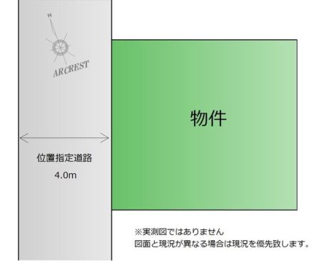 | 現況/引渡し | 古屋あり 更地渡し/相談 | 接道状況 | 接道: 北 4.5m 公道 道路幅: 7m 接道: 西 9.8m 私道 道路幅: 3.7m |