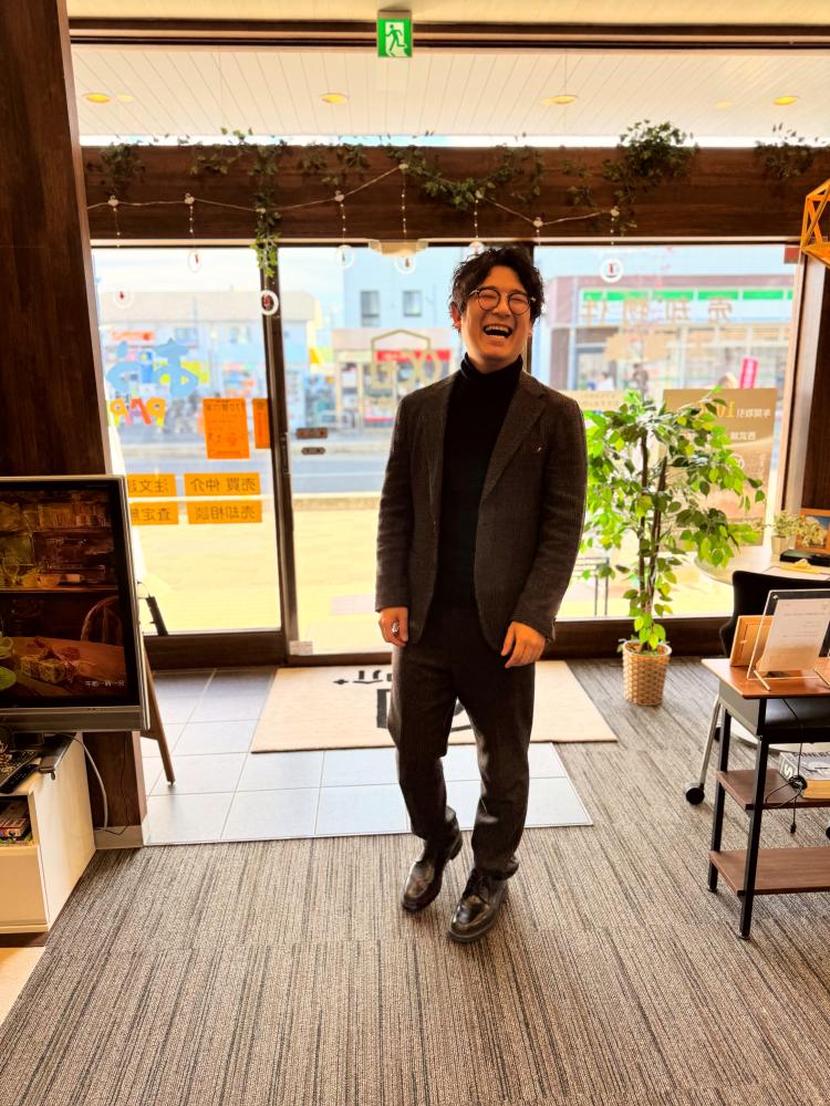 笑顔と眼鏡、天然パーマの3点セットでお届けします。