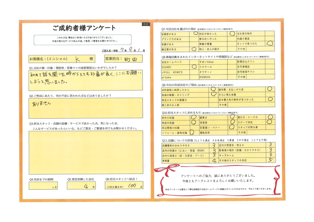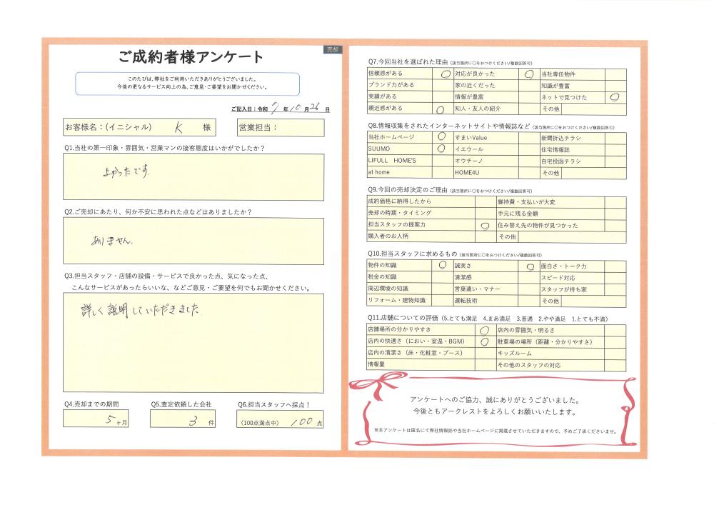 お客様の声|おうちの仲介+(株式会社アークレスト)