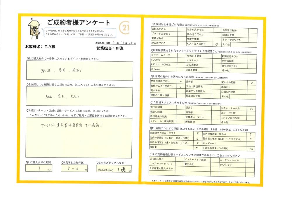 2024年1月13日 T.Y様 | ご購入成約事例|おうちの仲介+(株式会社アークレスト)