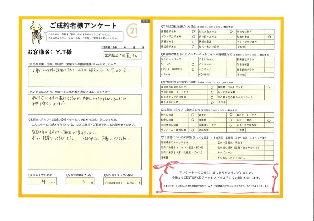 ご売却が成立し少し寂しい気持ちもございますが、大切なお住まいをご売却、お役立てすることができ本当にありがとうございました!