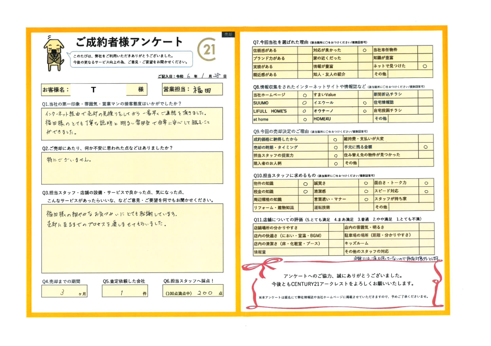 T様のご売却のお手伝いをさせていただけて、大変嬉しく思います。
