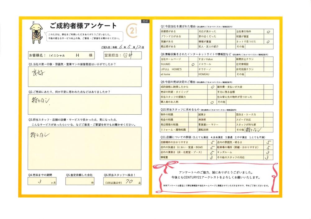 2024年05月12日 H様 | ご売却成約事例|おうちの仲介+(株式会社アークレスト)