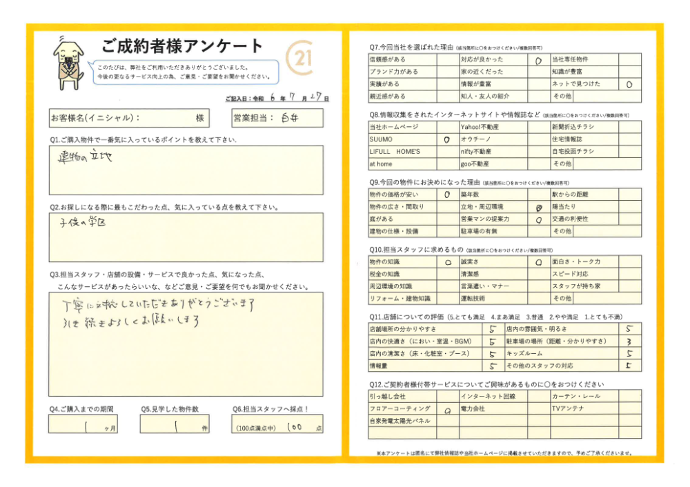 注文建築と建売でご検討されている中、しっかりをお打ち合わせをさせていただけたことで、素敵なお取引を行うことができました!