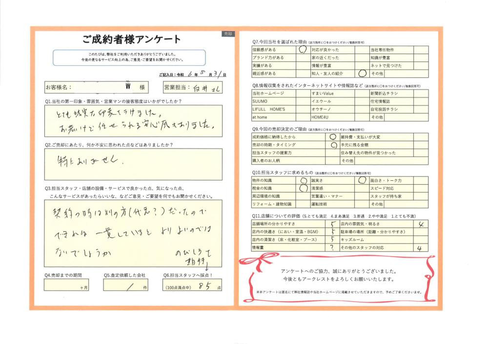 2024年08月31日 W様 | ご売却成約事例|おうちの仲介+(株式会社アークレスト)