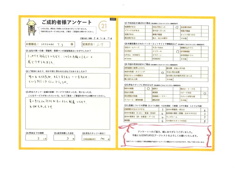 ご不安を解消しながら、すぐに成約につながったので良かったと思います。