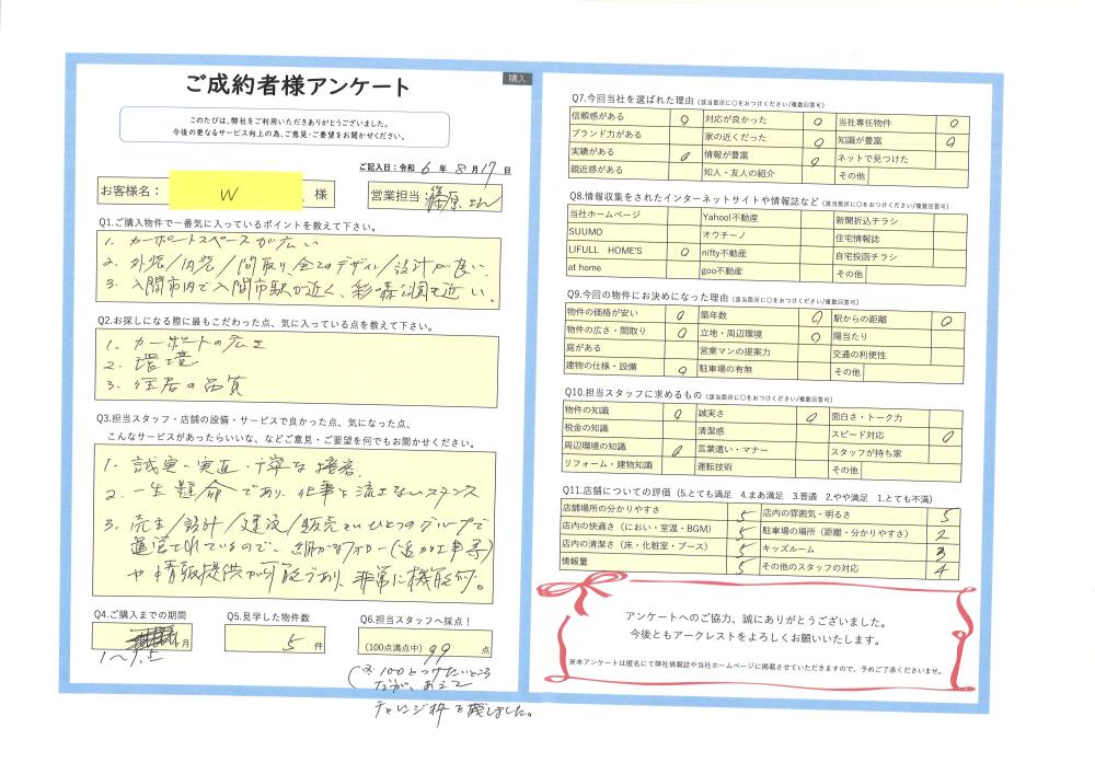 R6.8.17 入間市 W様 | ご購入成約事例|おうちの仲介+(株式会社アークレスト)