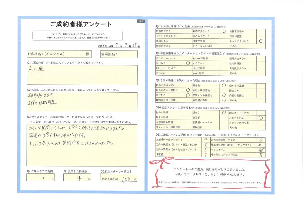 R7.7.25 所沢市 H様 | ご購入成約事例|おうちの仲介+(株式会社アークレスト)
