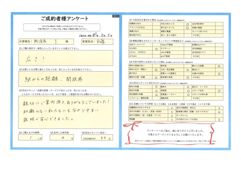 R7.8.8 所沢市 I様 | ご購入成約事例|おうちの仲介+(株式会社アークレスト)