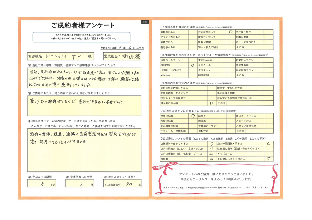 R7.6.20 東村山市 TY様 | ご売却成約事例|おうちの仲介+(株式会社アークレスト)