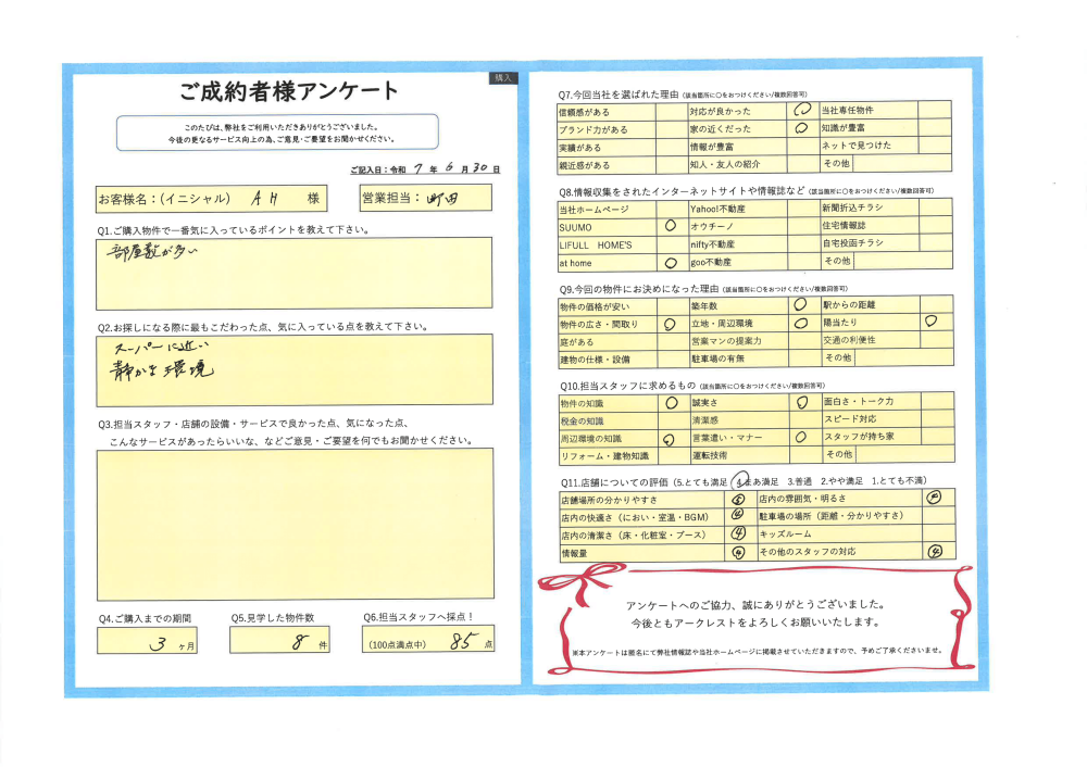 AH様にはお忙しい中、何度も足を運んでいただき、感謝の気持ちでいっぱいです。