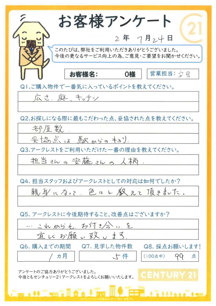 R2.7.24 所沢市 O様|おうちの仲介+(株式会社アークレスト)