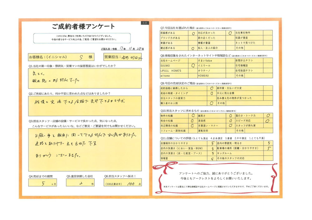 この度は弊社にお任せいただき、またアンケートにもご協力いただきまして誠にありがとうございます!