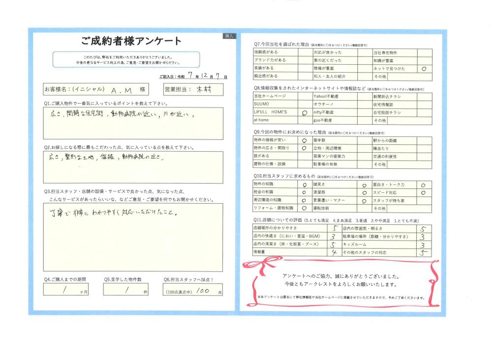 R7.12.7 所沢市 AM様 | ご購入成約事例|おうちの仲介+(株式会社アークレスト)