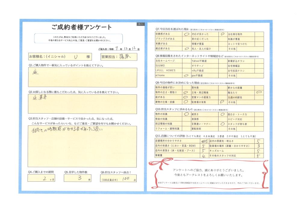 R.7 12.12 所沢市 U様 | ご購入成約事例|おうちの仲介+(株式会社アークレスト)