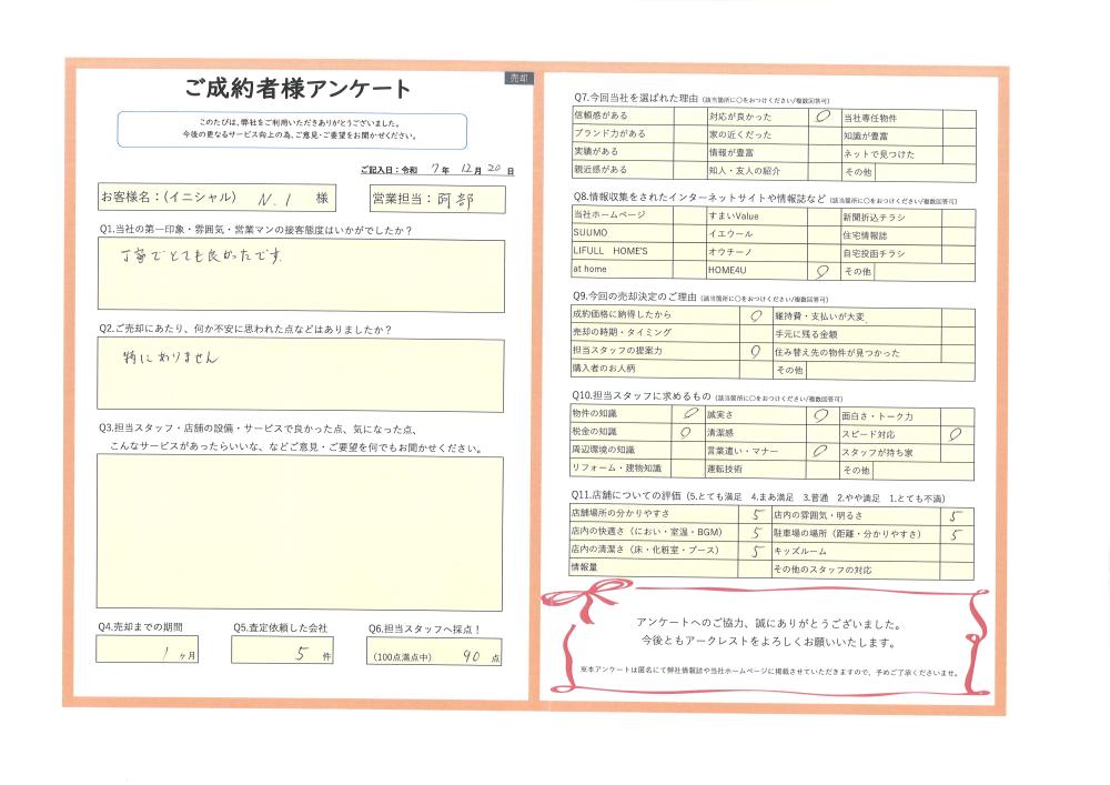 1ヵ月という期間でより良いご条件でご売却ができたこと大変嬉しく思います。