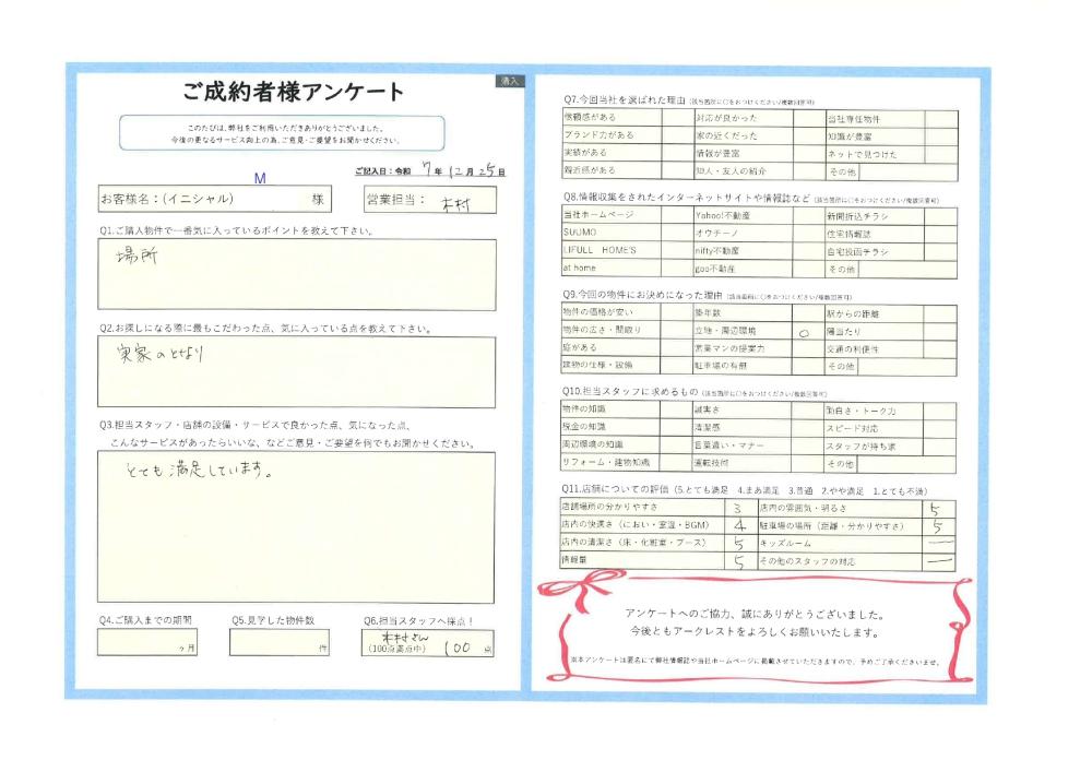 この度は弊社にて不動産をご購入いただきまして、ありがとうございました。