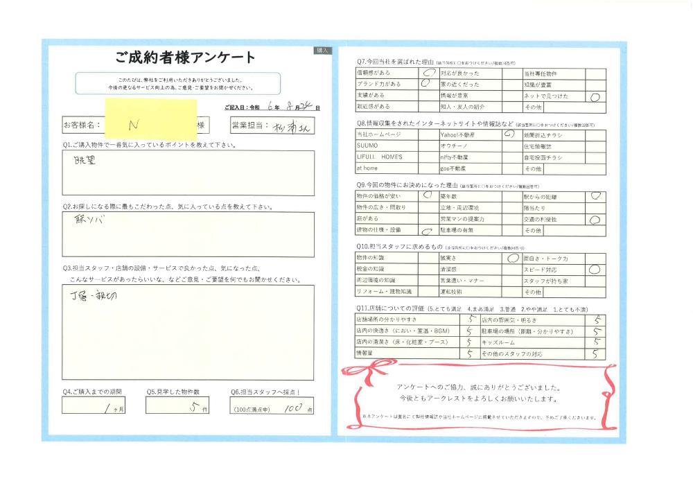 R6.8.24 練馬区 N様 | ご購入成約事例|おうちの仲介+(株式会社アークレスト)
