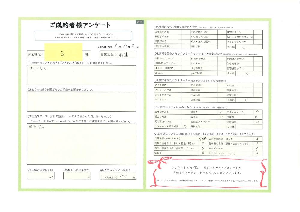 S様の大切なお住まいづくりに携わることができ、スタッフ一同大変うれしく思っております。