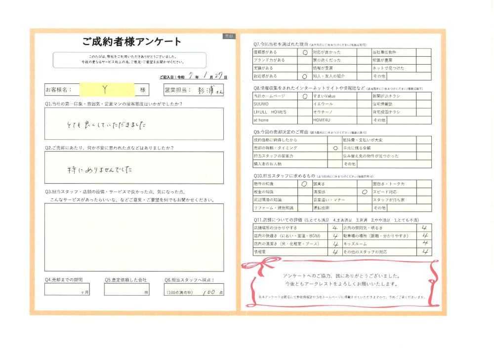 この度は、大切なご資産のご売却を弊社にお任せいただき、誠にありがとうございました。
