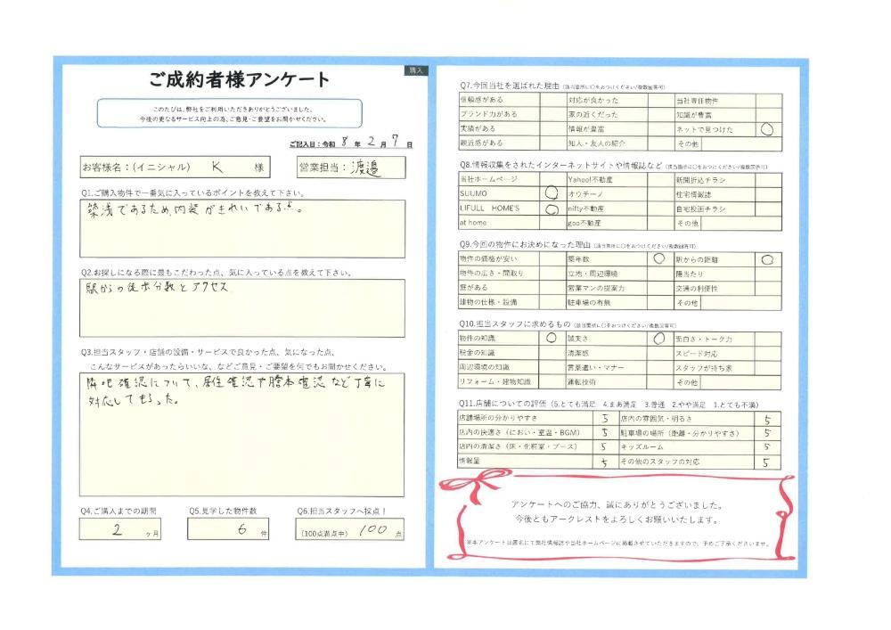K様にとってご納得いく物件をご紹介でき私もうれしいです。