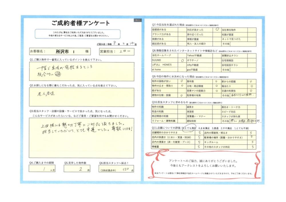 R8年 2月14日 所沢市 I様 | ご購入成約事例|おうちの仲介+(株式会社アークレスト)