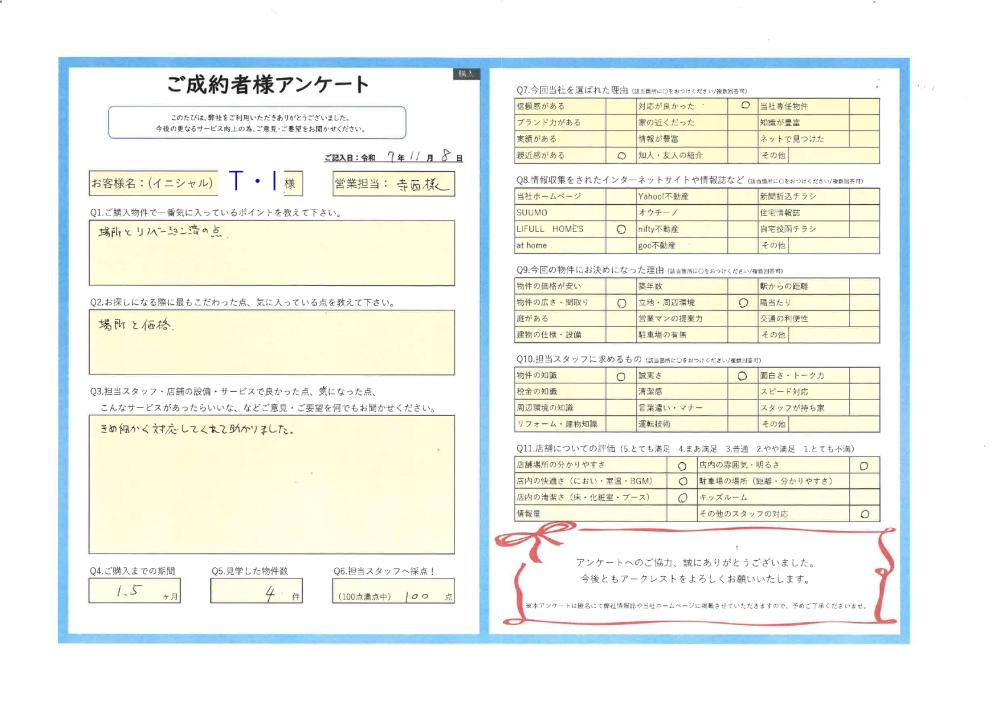 2025年11月8日 T・I様 | ご購入成約事例|おうちの仲介+(株式会社アークレスト)
