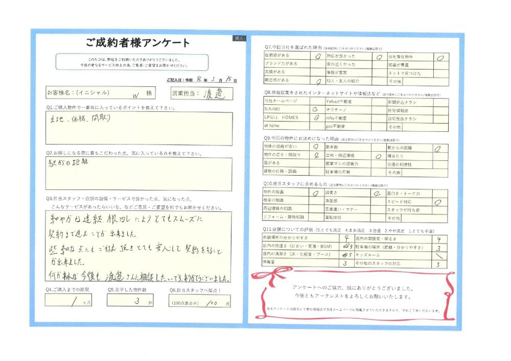 R8年 3月15日 ふじみ野市 W様