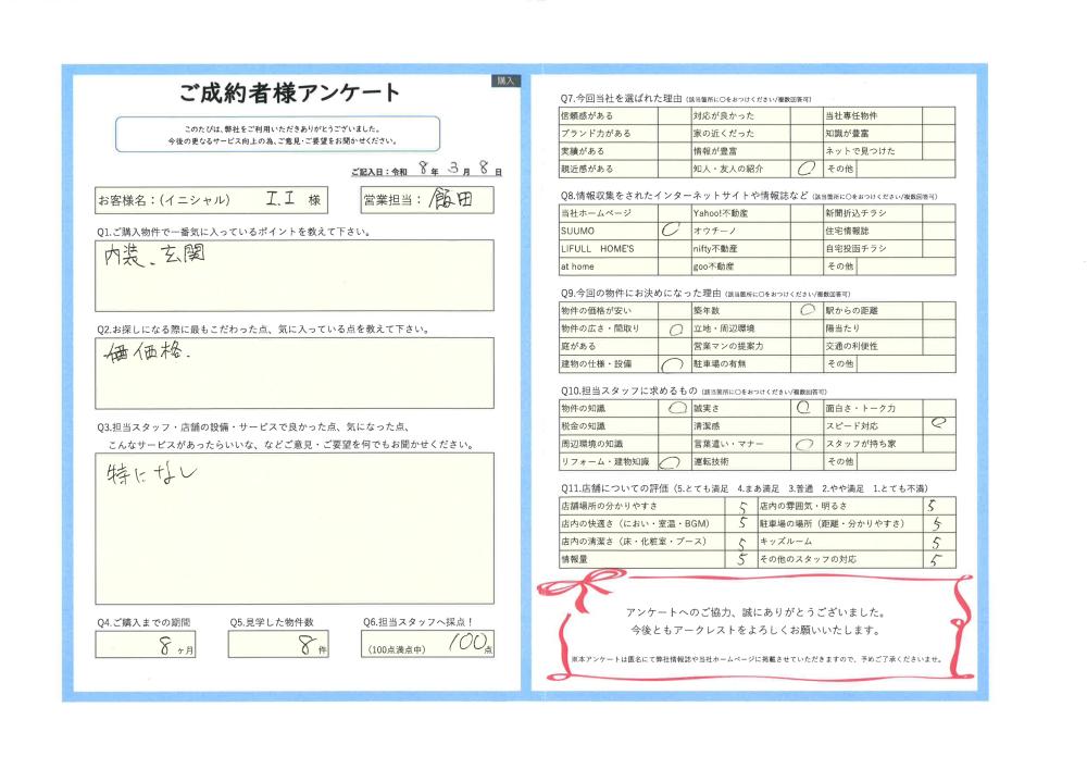 R8.3.8 茨城県 II様 | ご購入成約事例|おうちの仲介+(株式会社アークレスト)