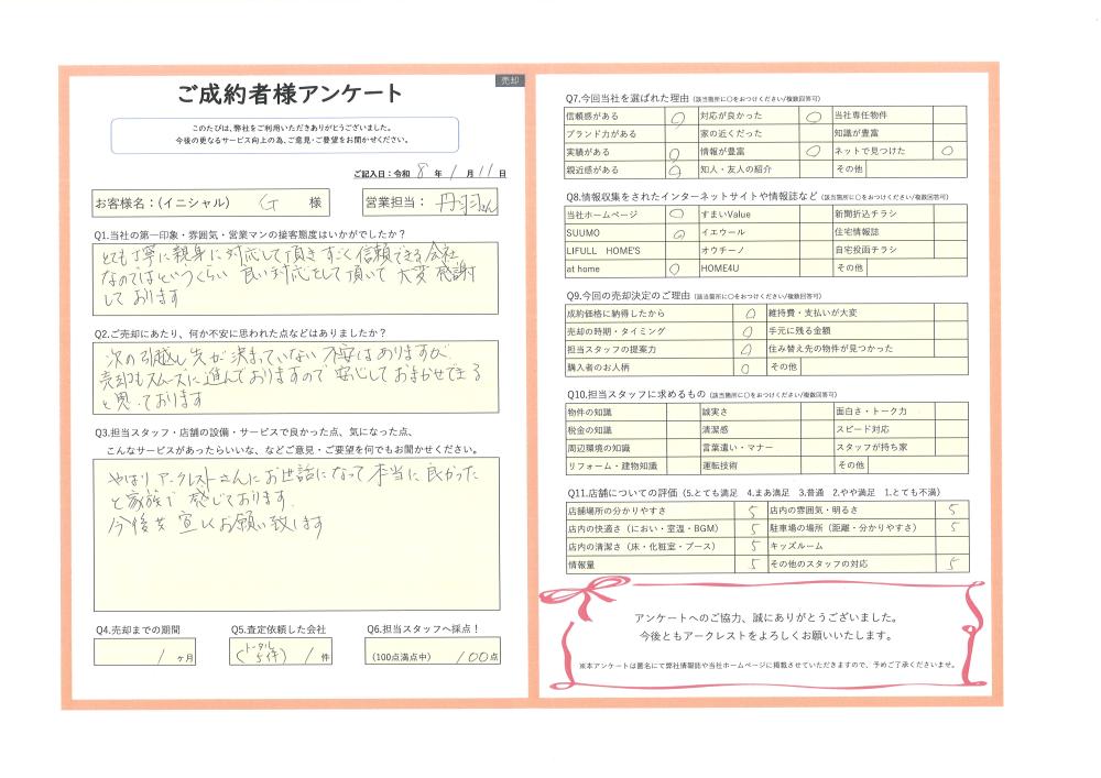 次の引越し先が決まっていない不安はありますが、売却もスムーズに進んでおりますので、安心してお任せできると思っております。