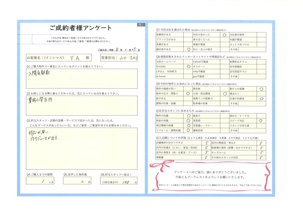 R8.2.25 入間市 YA様 | ご購入成約事例|おうちの仲介+(株式会社アークレスト)