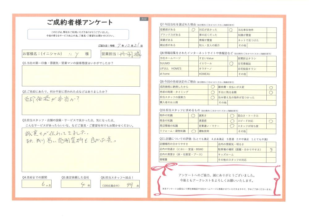 R7.12.21 飯能市 NY様 | ご売却成約事例|おうちの仲介+(株式会社アークレスト)