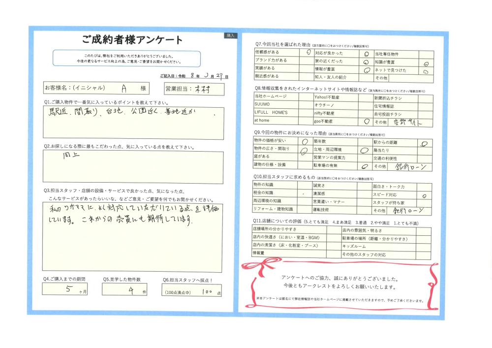 この度は、ご成約ありがとうございました。