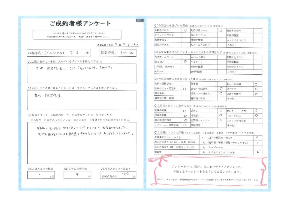 土地探しという大切な場面で、少しでもお力になれたことを大変嬉しく思っております。